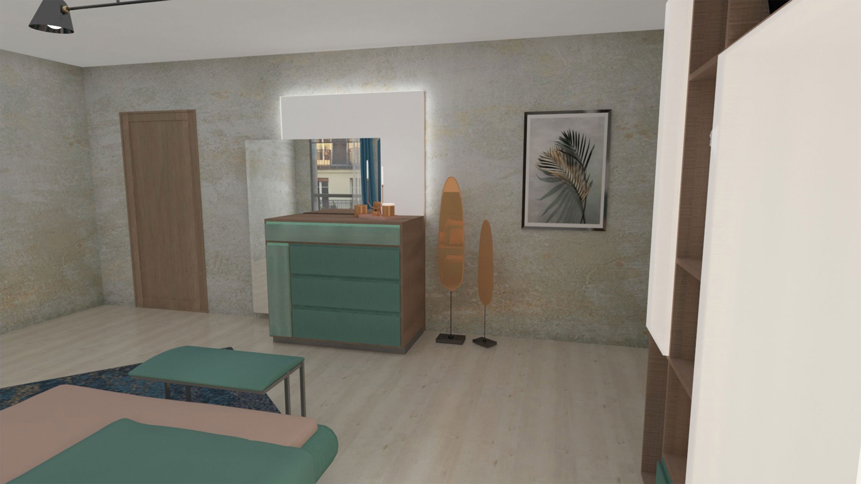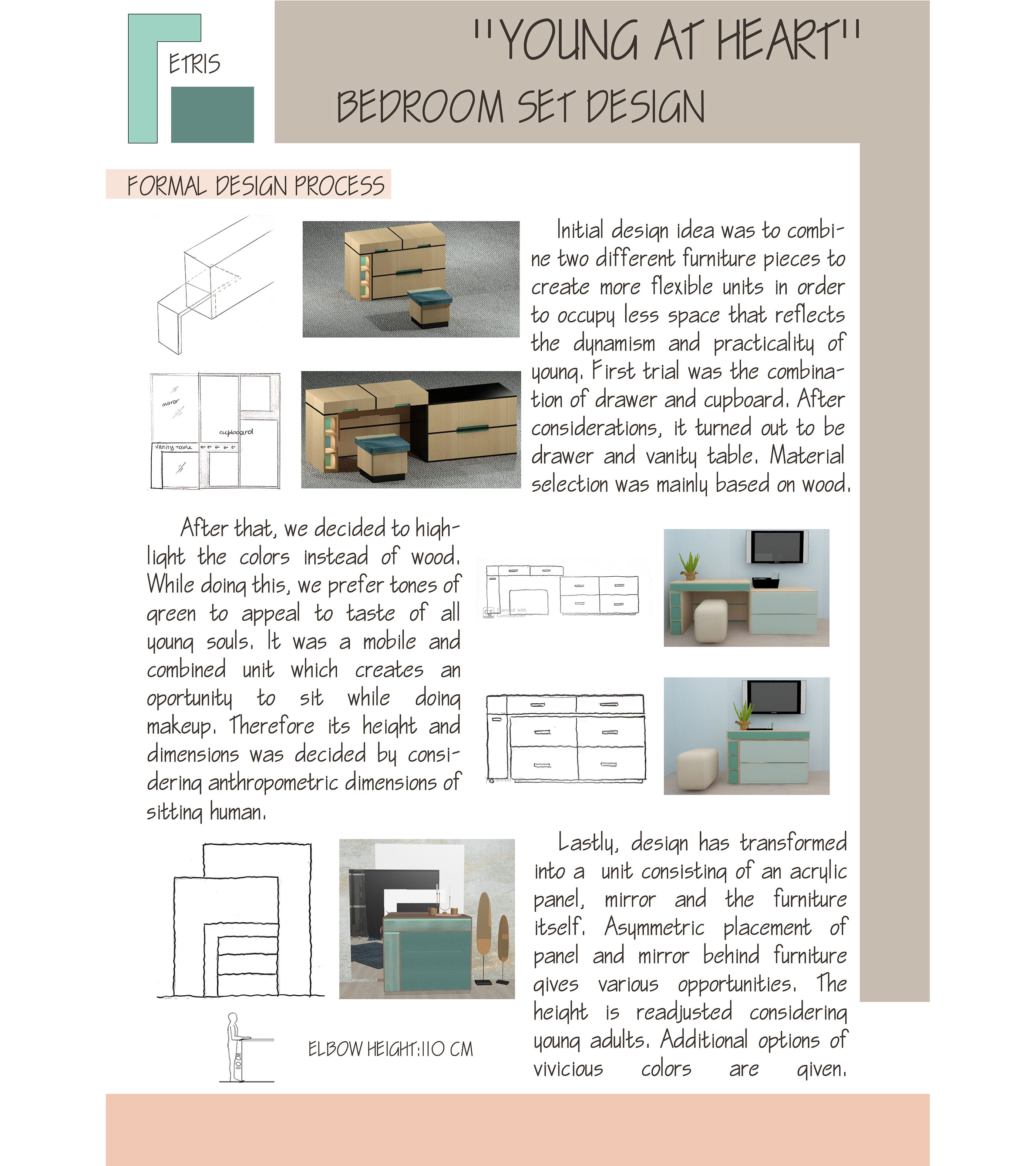The aim of the project is to design the complete set of items that form a new collection for Tepe Home and then detail one of the items. Since it was a group project, we selected bedroom set design including bed, headboard, night table, chest of drawers, vanity table, ottoman and wardrobe.