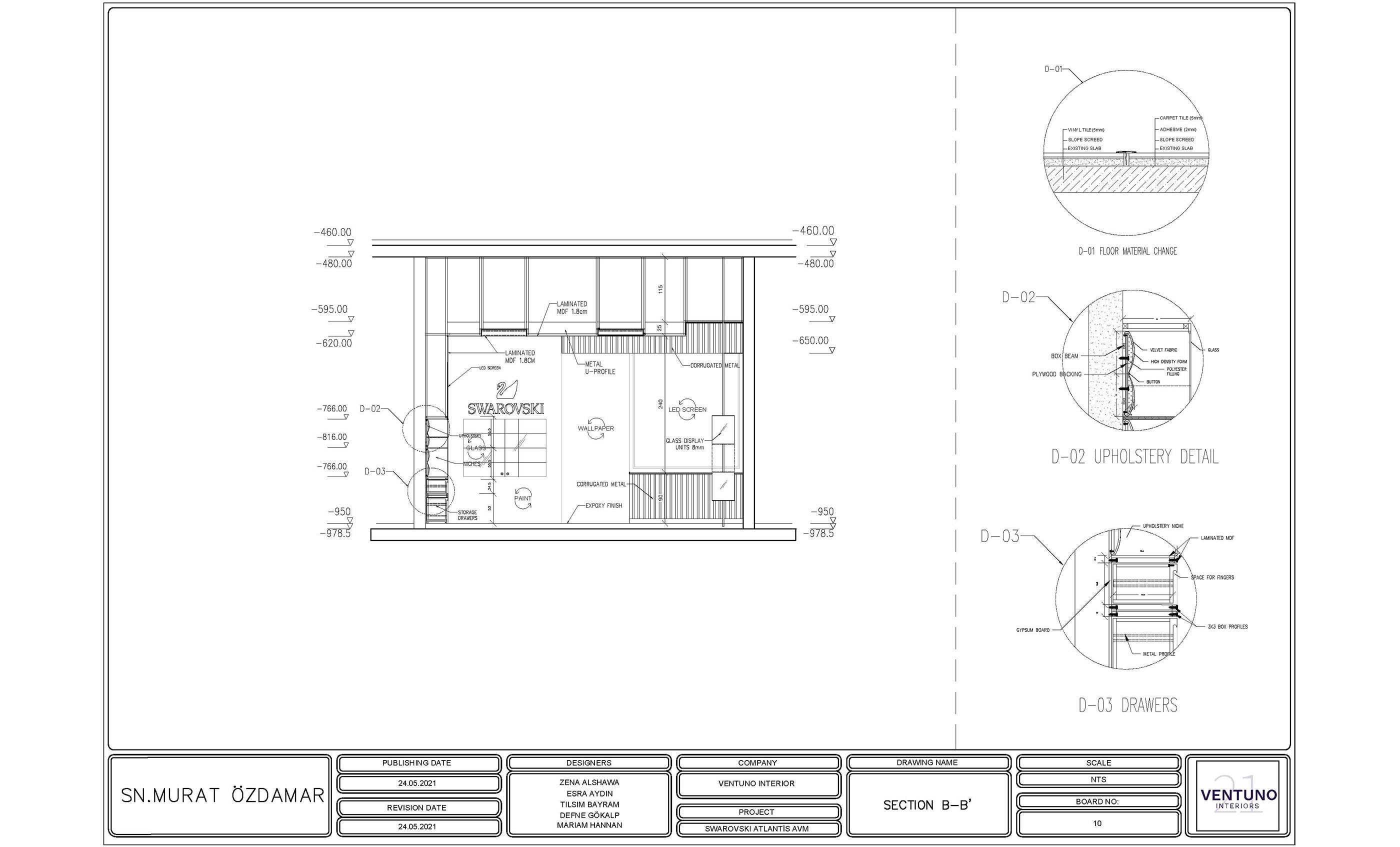 The project is about the interior architectural works of an Earring Store. It is located at Atlantis AVM with an area of approximately 72 m2. The project includes several plans, sections, elevations, quantity list, specification and a proposal. As a group, we selected Swarovski as the client for the design.